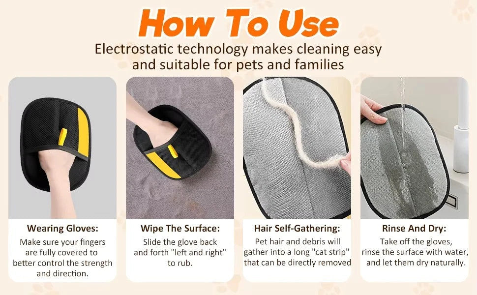 Our Electrostatic Pet Hair Removal Glove is the essential tool every cat and dog owner needs to keep their home clean and fur-free! Designed for maximum efficiency, this reusable mitt makes de-shedding a quick and easy chore.